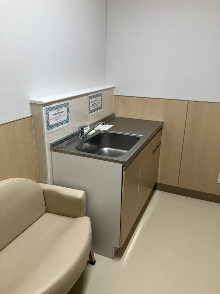 室内には、おむつ交換台、水道、ケトル、冷暖房を備えており、